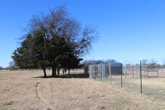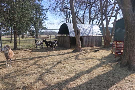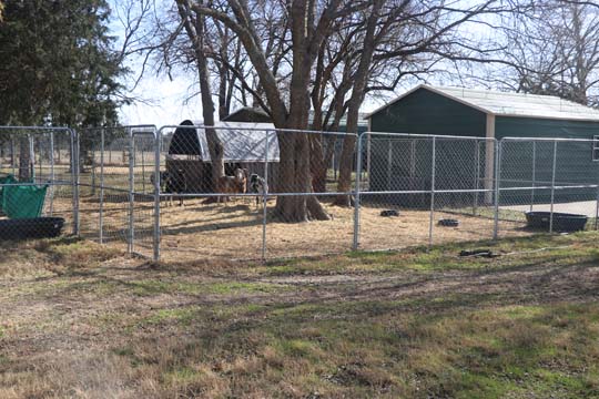 Cinnstar PDS has three small areas: The Barn Pen, and Two Chain Link Pens. One chain link pen is 30x40 the other is 20x30.These smaller areas are particularly great for breeding just a few ewes, and also isolating new sheep that come to our flock. Our Chain Link Pens are located Right Behind the Covered Back Porch and Office Windows.